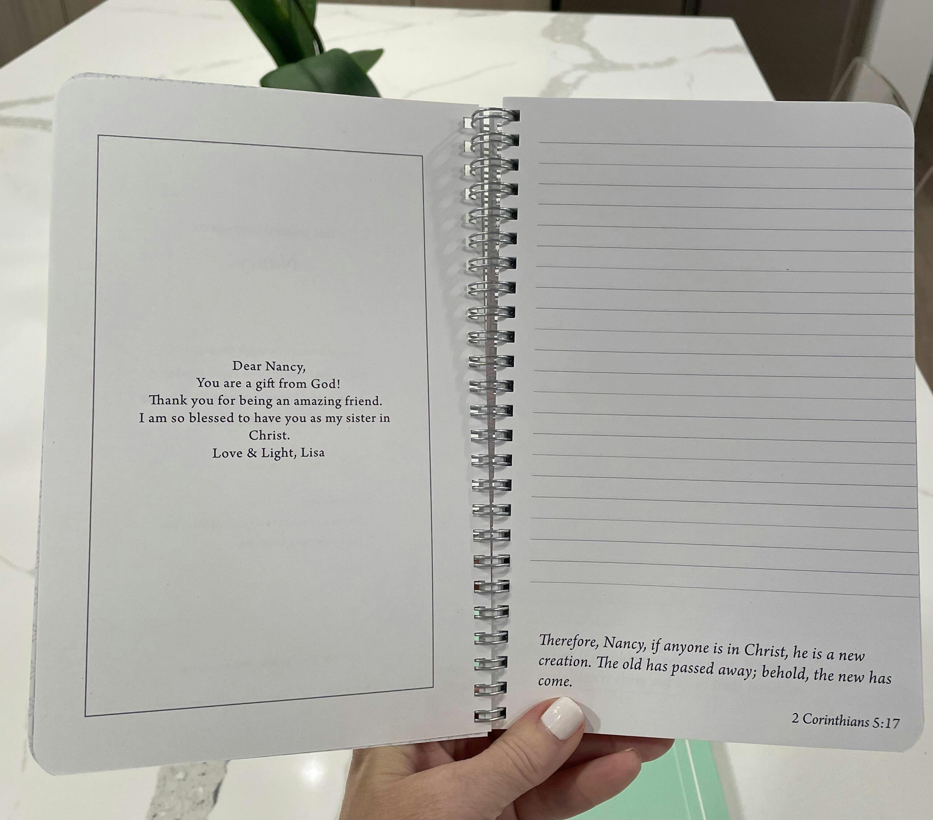 I am so thankful I found your company and products. I wanted to give my sister in law a thoughful gift for Christmas. She has been going through a lot over the last year and I wanted something that spoke to her devotion to her Lord. This was the perfect gift! She loved how each page was personalized with her name written in the scripture. I also bought one for my daughter who is getting back into Christianity and she uses this journal while studying the bible. I look forward to doing more shopping on your site!